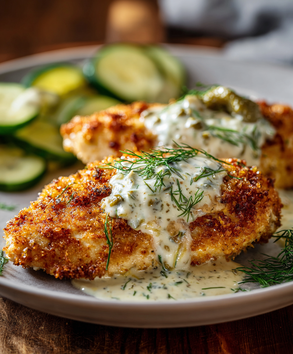 Crispy Parmesan Chicken with Garlic Cream Sauce