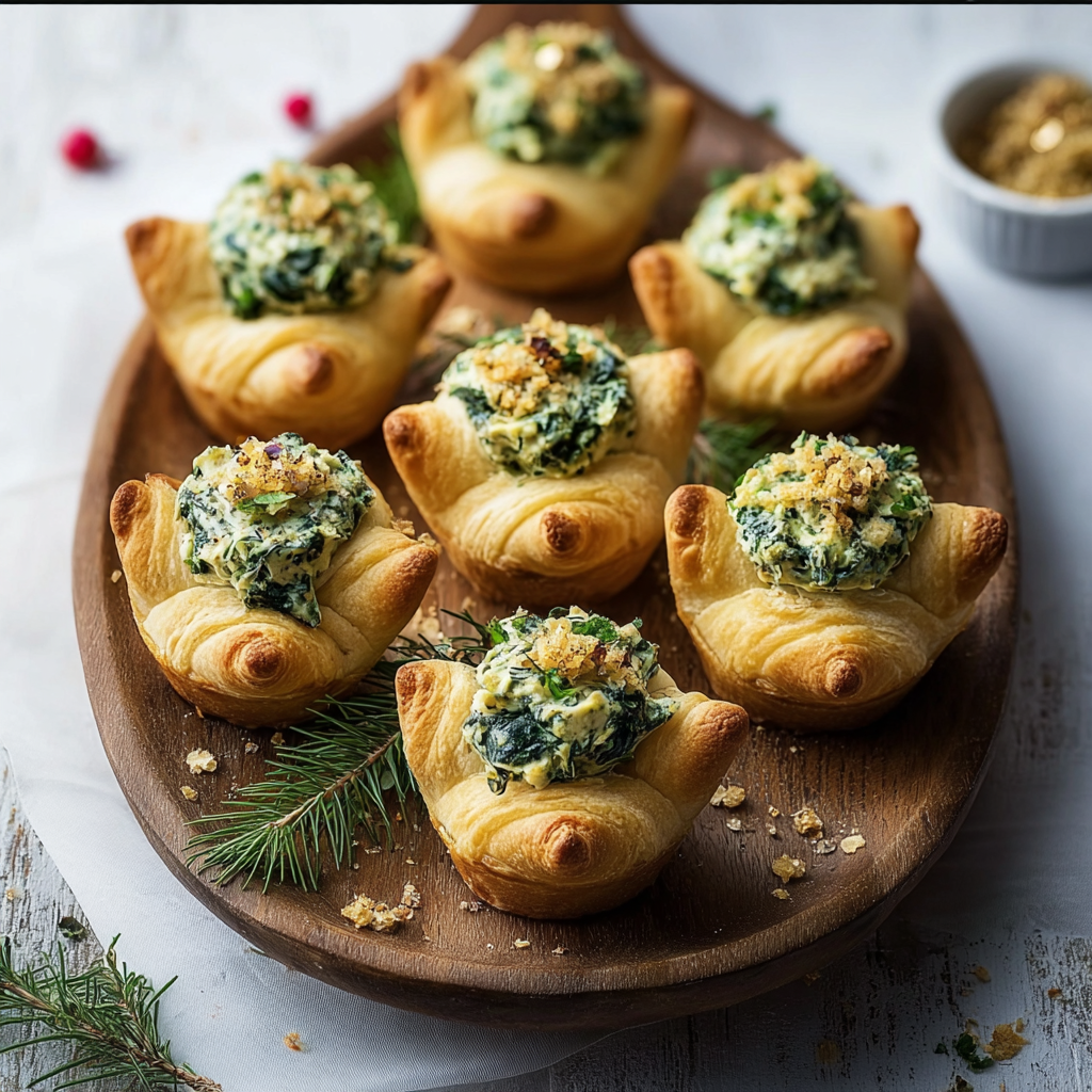 Tree-Topped Spinach Artichoke Crescent Cups